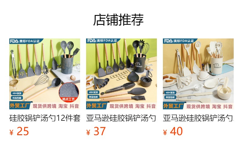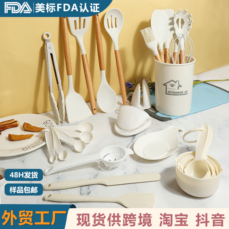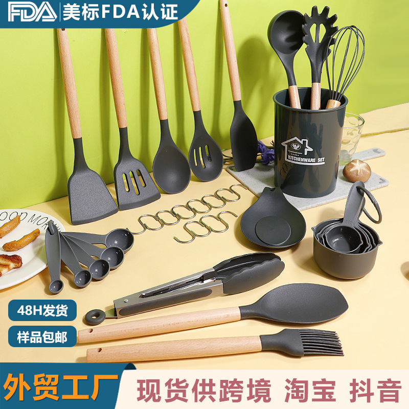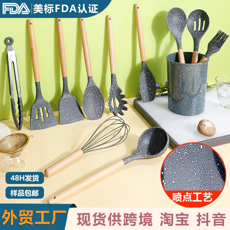Cross-Border Silicone Spatula Soup Spoon 12 Sets Of Non-Stick Food Grade Silicone Spatula Wooden Handle Silicone Kitchenware Set Wholesale