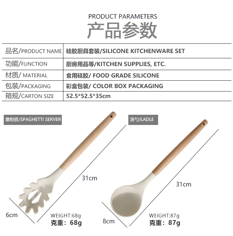 Wooden handle silicone kitchenware 1035g (color box) | Wooden handle silicone kitchenware 840g (color box) | Wooden handle silicone kitchenware 700g (color box)